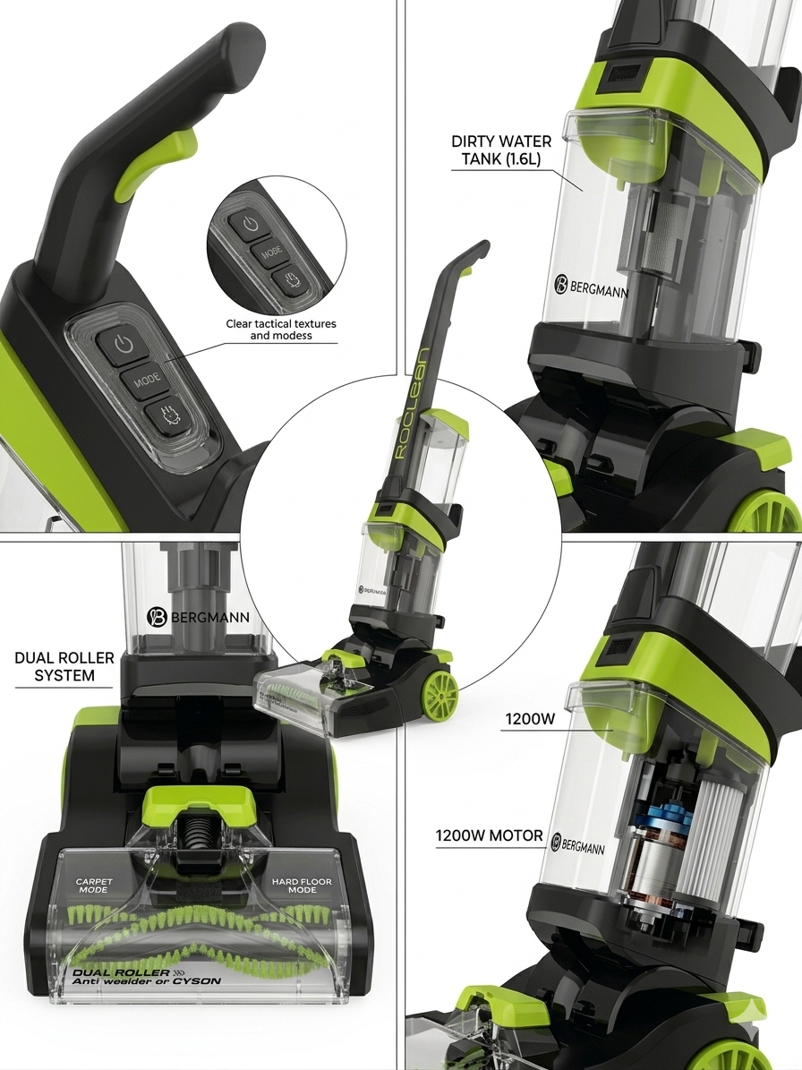 - Double Performance : Il possède des doubles rouleaux spécifiques pour les tapis et des doubles rouleaux pour les sols durs.